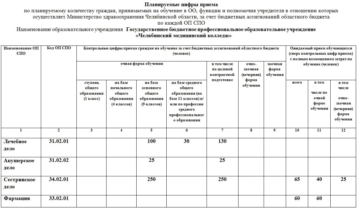 - Количество мест для приема на обучение