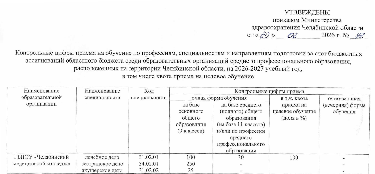 Приказ об утверждении контрольных цифр приема —